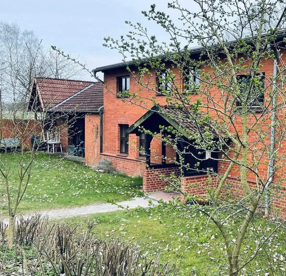 Auf dem Resthof mit rd. 2 Hektar Grundstück am Wiesenhang bauten wir zunächst Wohnungen im Haupthaus für die Hausgemeinschaft aus. Dort leben die vier Personen, die das Gästehaus betreiben. Ein parallel zum Wohnhaus stehendes großes Gebäude wurde in der zweiten Bauphase entkernt und zu einem Gäste- und Tagungshaus in zwei Etagen umgebaut. Später schlossen wir noch einen Neubau mit einem großen Raum an das Gästehaus an.