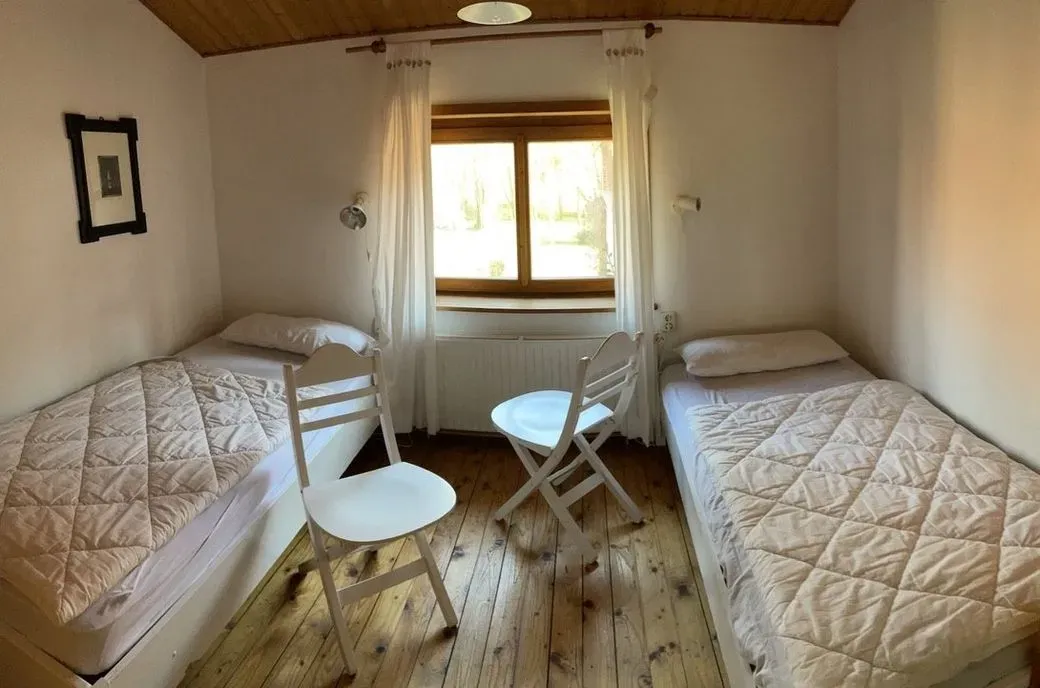 Die Gäste wohnen in einfach eingerichteten Zimmern mit Waschbecken. Zwei kleine Einbettzimmer und sieben Zweibettzimmer liegen in der ersten Etage. Im Sanitärbereich: drei Duschen und vier Toiletten. Im Erdgeschoss steht Ihnen eine komplett ausgestattete Küche mit Geschirrspüler zur Verfügung. Hier kochen und verpflegen Sie sich selbst.